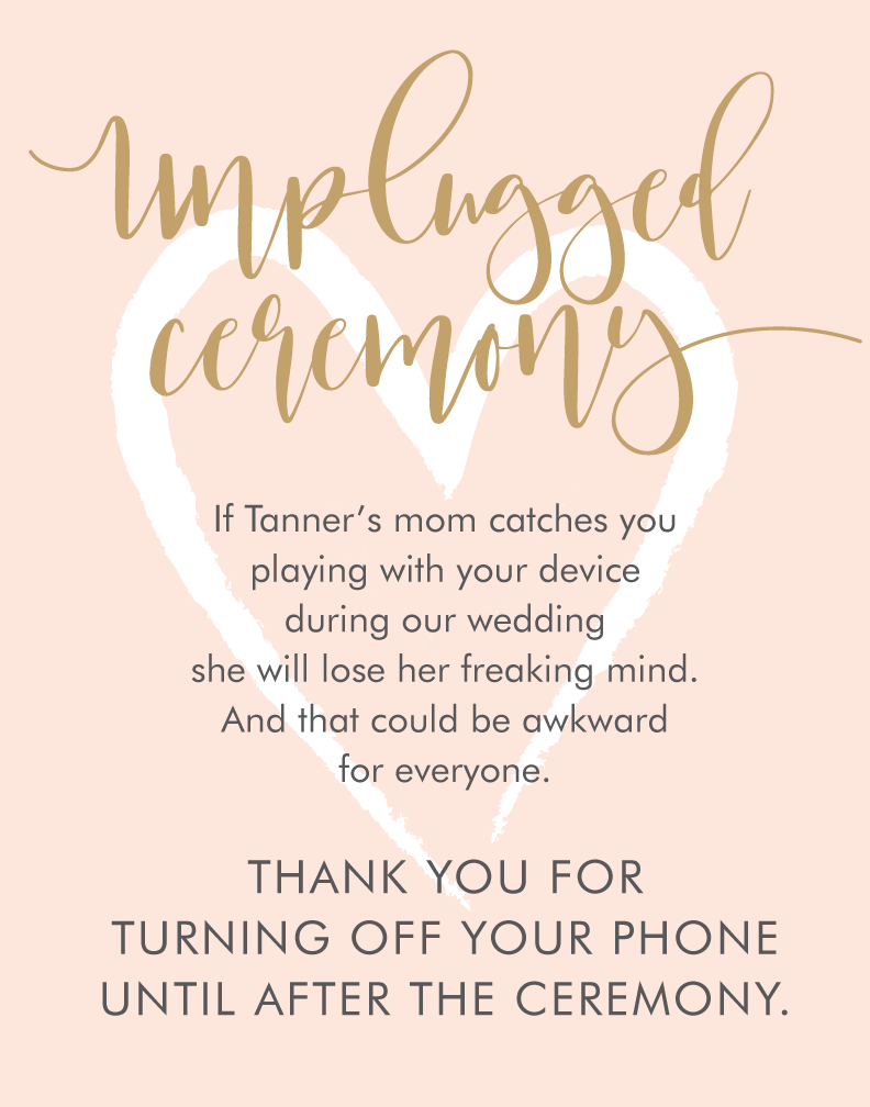 Custom Printed UNPLUGGED Sign 11×14 ← Previous Use various Art Print sizes to custom print a single sign for your wedding or special event.